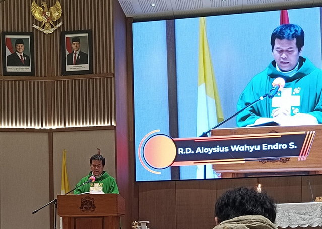 Misa dipimpin oleh R. D. Aloysius Wahyu Endro S. atau dipanggil Romo Aloy, dan didampingi R. D. Antonius Jonmedi Tarigan atau dipanggil juga Romo Anton. Kemudian petugas misa kali ini diambil dari OMK St. Maria Fatima, Lembang. Dalam misa kali ini, sesuai dengan bacaan Injil, Romo Aloy mengajak para OMK untuk berpikir cerdik namun tetap berperilaku tulus. Mengutip dari Lukas 16: 1-8, menceritakan seorang bendahara yang menggunakan akal cerdiknya untuk membuat seseorang berhutang budi kepadanya. Lalu kita diajak merefleksikan, apakah salah untuk berlaku cerdik? Jawabannya adalah tidak. Boleh untuk berlaku cerdik, namun tetap harus ada ketulusan hati di dalamnya. Tidak seperti bendahara yang hanya menggunakan kecerdikannya tersebut untuk memanipulasi orang lain.