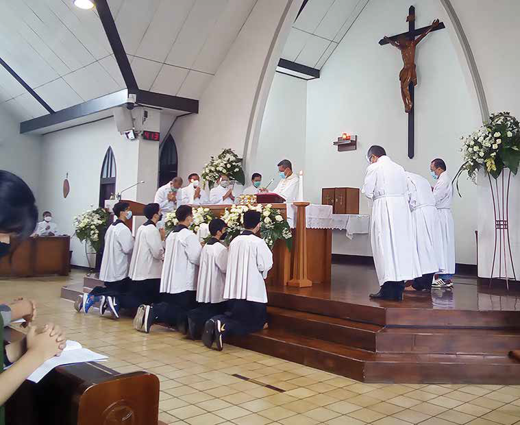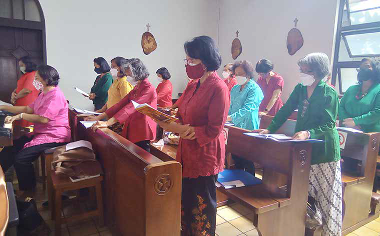 Perayaan Misa Hari Raya Natal 2021 Paroki Santo Theodorus pada pukul 9.30 dilayani Pastor Vikaris, Pastor Johanes Sumardi OSC. Sedangkan misa pukul 07.00 oleh Pastor Yohenes Djino Widyasuhardjo OSC. Kami merayakan misa dengan tetap menjalankan prokes. Meski demikian, arus umat yang hadir cukup melonjak. Setidaknya petugas terlihat lebih sibuk. Sebagai antisipasi sudah disiapkan ruangan di samping gereja. Dekorasi tampak tertata apik rapih dan elegan. Bunga Mawar dan Lily putih mendominasi seputar altar. Palungan dan sesosok patung bayi melambangkan simbol kelahiran Juru Selamat terpajang di depan Altar. Perayaan menjadi lebih meriah, karena koor Wanita Katolik Republik Indonesia Cabang Sukawarna bernyanyi dengan semangat dan sepenuh hati.