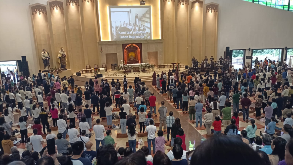 Setelah khotbah, misa dilanjutkan dengan doa penyembuhan. Dalam sesi ini, Pastor Yohanes menyebutkan berbagai jenis penyakit, dan umat yang memiliki pergumulan kesehatan dipersilakan untuk berdiri dan didoakan secara khusus. Doa penyembuhan ini menjadi momen yang penuh harapan dan penguatan iman bagi seluruh umat yang hadir.